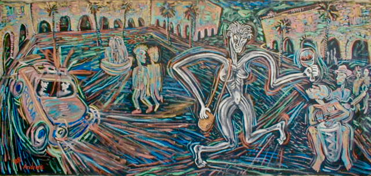 34x72” oil on canvas 1988, original painting by Andres Garcia-Peña, signed & dated on back