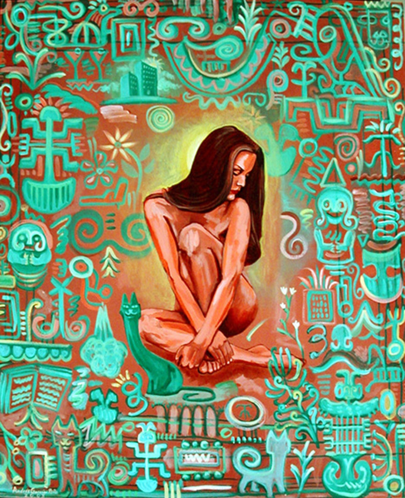 36x44” oil &acrylic on canvas 2002, original painting by Andres Garcia-Peña, signed & dated on back
